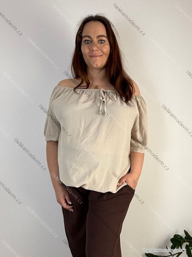 ZBOŽÍ (22229) > Halenka krátký rukáv dámské nadrozměr PRUE (50/52/54 ONE SIZE) ITALSKÁ MÓDA IM426075/DUR 50/52/54 béžová