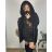 Kabát alpaka s kapucňou dlhý rukáv dámsky (2XL/3XL ONE SIZE) TALIANSKA MÓDA IMWC233248/DUR čierna