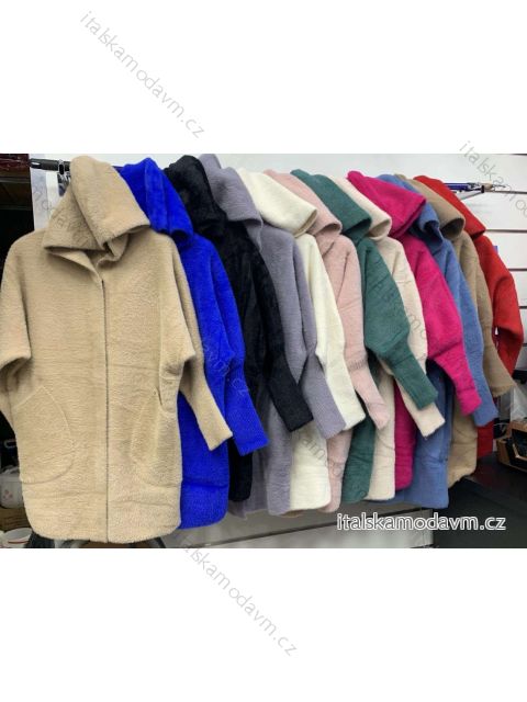 Kabát alpaka teplý dlhý rukáv s kapucňou dámsky (S / M / L ONE SIZE) TALIANSKÁ MÓDA IMWD20476 tmavá zelená