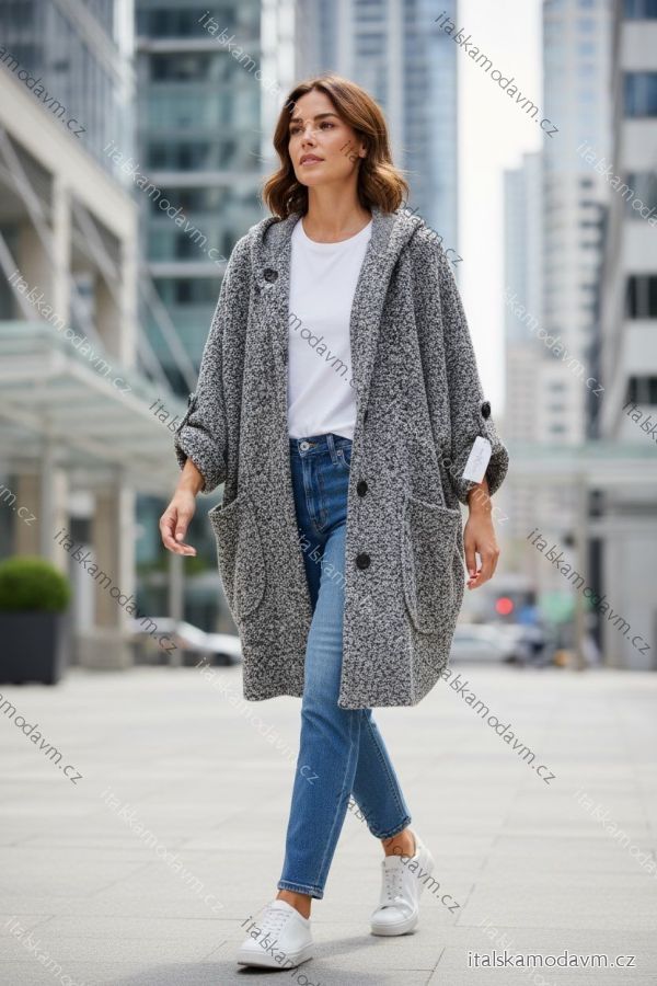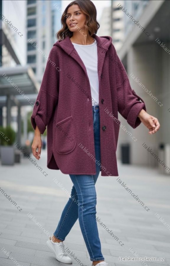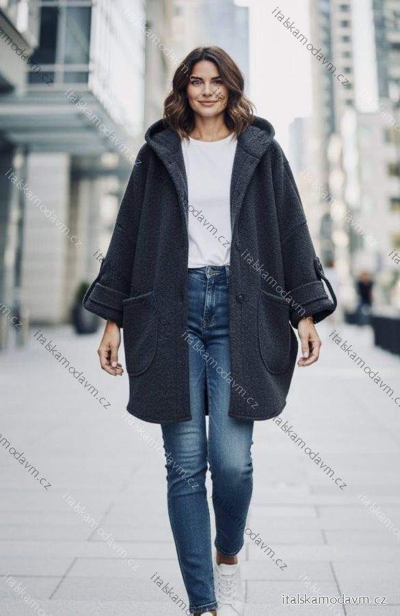 Kabát baránkový dlhý rukáv dámsky nadrozmer (54/56/58 ONE SIZE) TALIANSKA MÓDA IMD25160