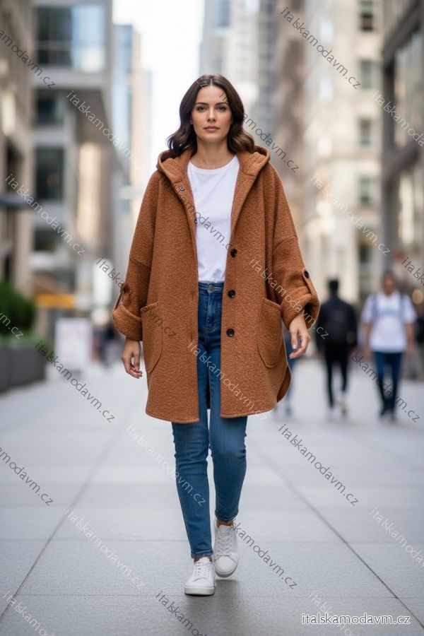 ZBOŽÍ (22662) > Kabát baránkový dlhý rukáv dámsky nadrozmer (54/56/58 ONE SIZE) TALIANSKA MÓDA IMD25160