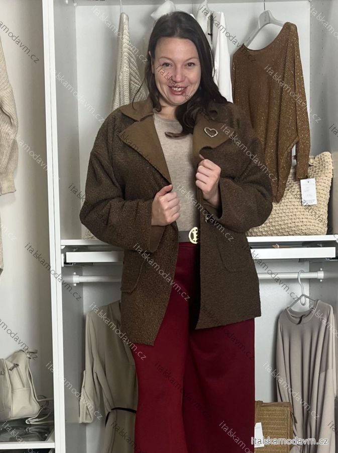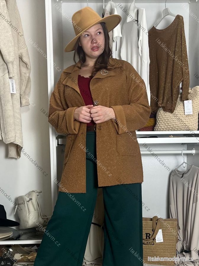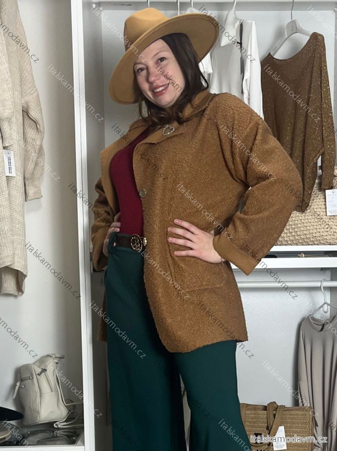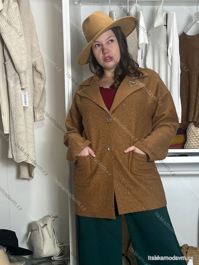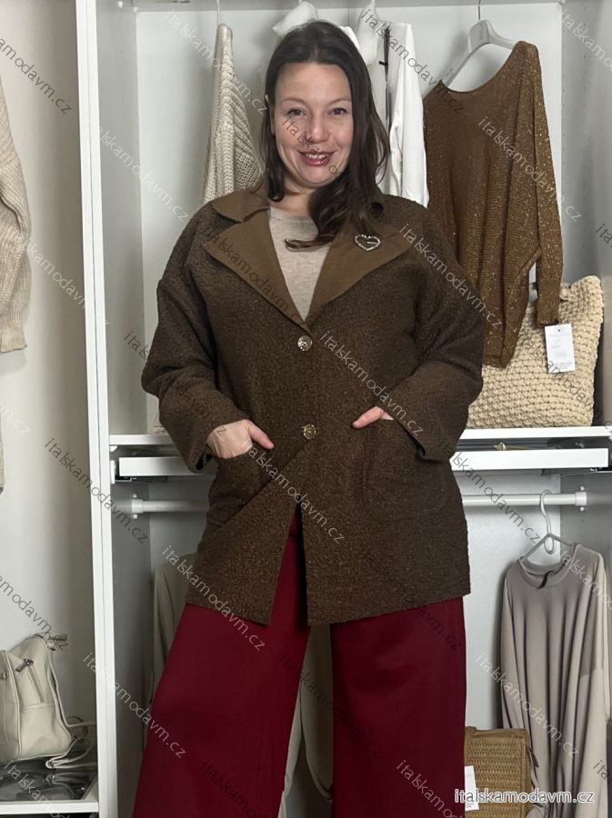 Kabát baránkový na gombíky dlhý rukáv dámsky HEART (40/42/44 ONE SIZE) INDICKÁ MÓDA IMWKA252696/DUR hnedá