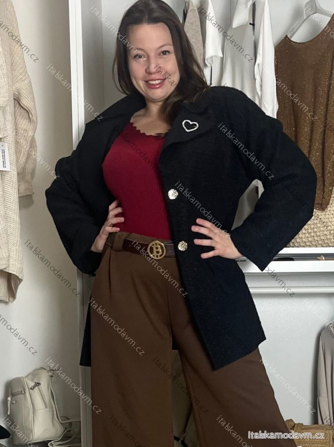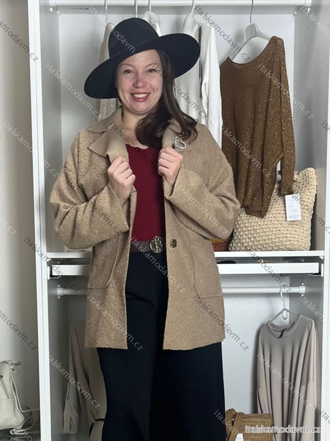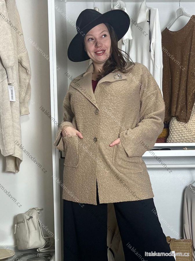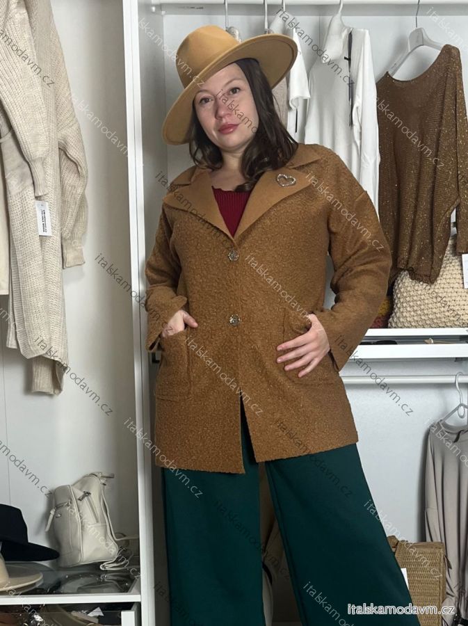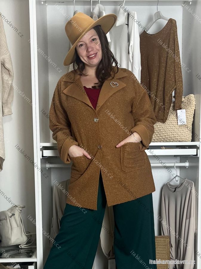 Kabát baránkový na gombíky dlhý rukáv dámsky HEART (40/42/44 ONE SIZE) INDICKÁ MÓDA IMWKA252696/DUR hnedá