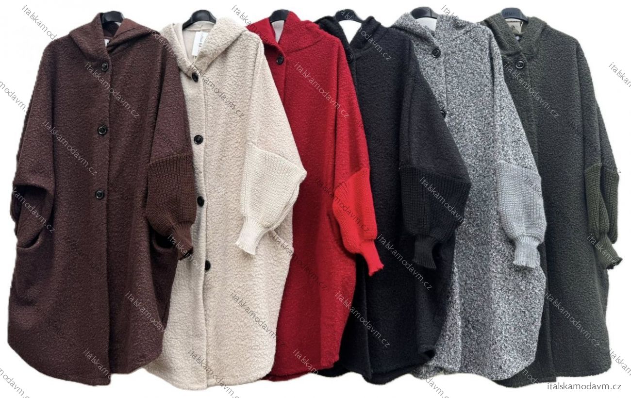 Kabát baránkový s kapucňou dlhý rukáv dámsky nadrozmer KARLA (54/56/58 ONE SIZE) TALIANSKA MÓDA IMD25161