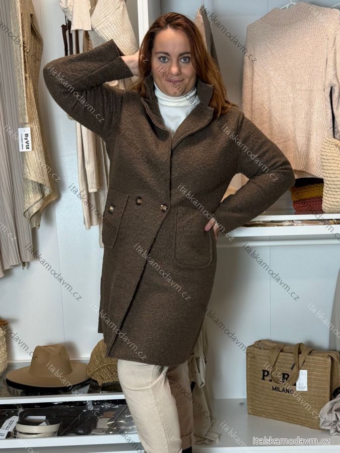 Kabát beránek dlouhý rukáv dámský nadrozměr OLGA (48/50/52 ONE SIZE) ITALSKÁ MÓDA IMWCH251111/DUR 48/50/52 tmavě hnědá