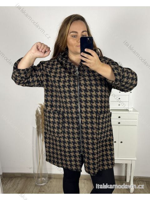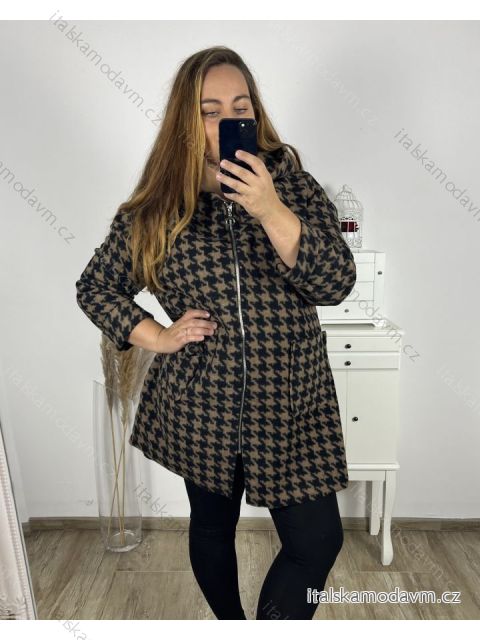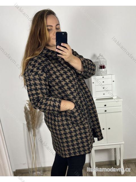 Kabát dlhý rukáv dámsky nadrozmer (3XL/4XL ONE SIZE) TALIANSKA MÓDA IMC23346/DU 3XL / 4XL hnedá