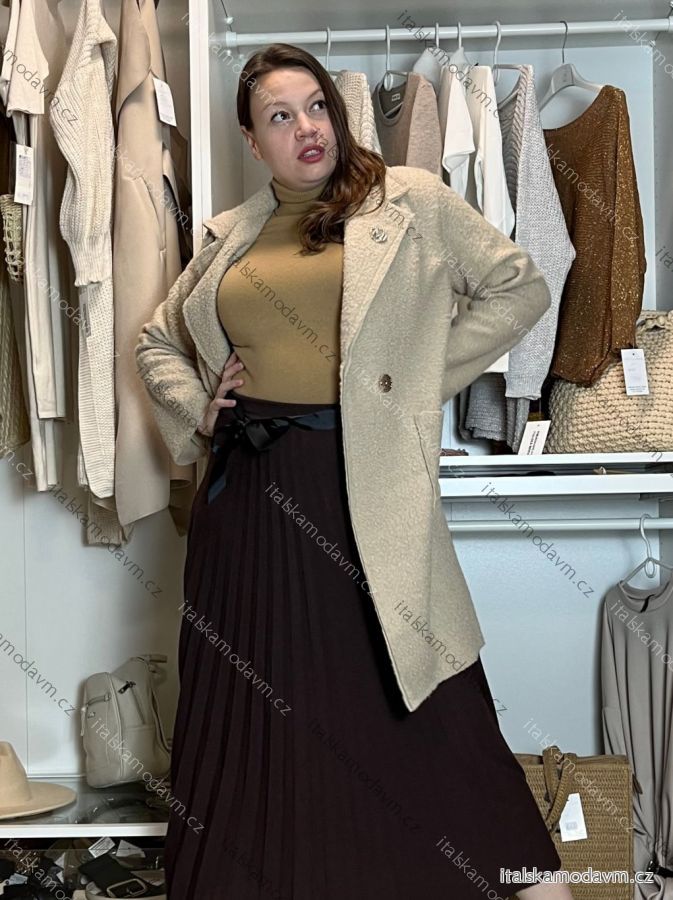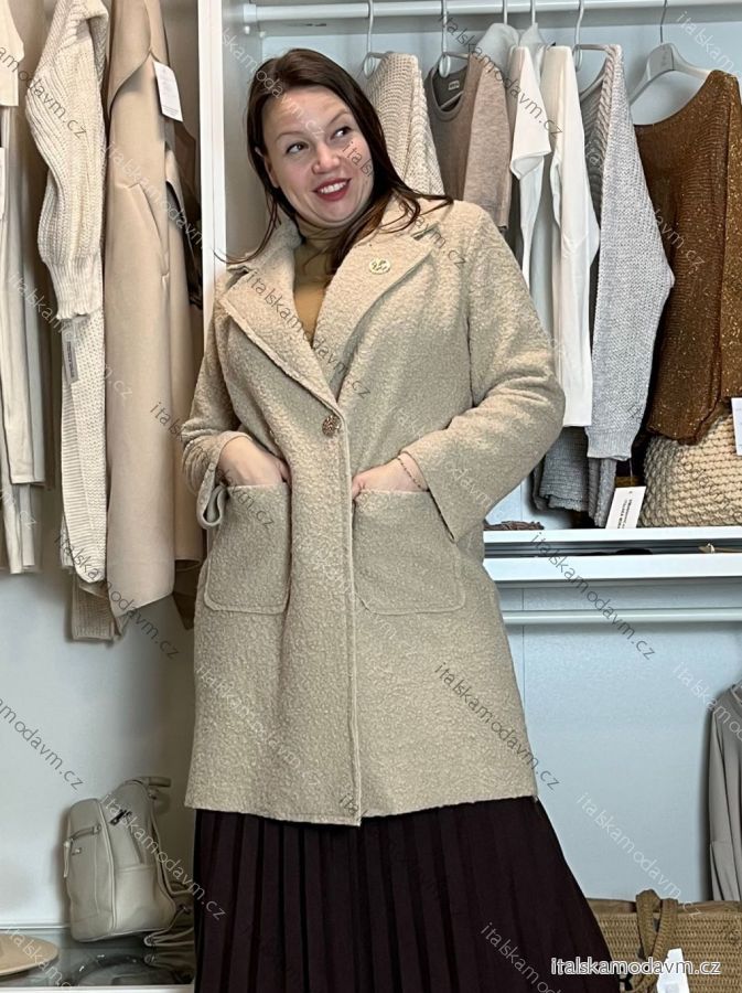 ZBOŽÍ (22805) > oblečenie dámske (18627) > Bundy, kabáty, vesty a saka (1315) > kabáty dámske (519) > kabáty flaušový (158) > Kabát flaušový baránkový dlhý rukáv dámsky nadrozmer (44/46/48 ONE SIZE) TALIANSKA MÓDA IM4251121