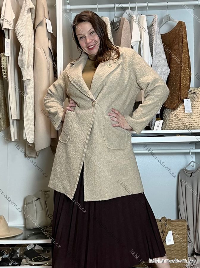 ZBOŽÍ (22804) > oblečenie dámske (18628) > Bundy, kabáty, vesty a saka (1315) > kabáty dámske (519) > kabáty flaušový (158) > Kabát flaušový baránkový dlhý rukáv dámsky nadrozmer (44/46/48 ONE SIZE) TALIANSKA MÓDA IM4251121/DUR 44/46/48 béžová