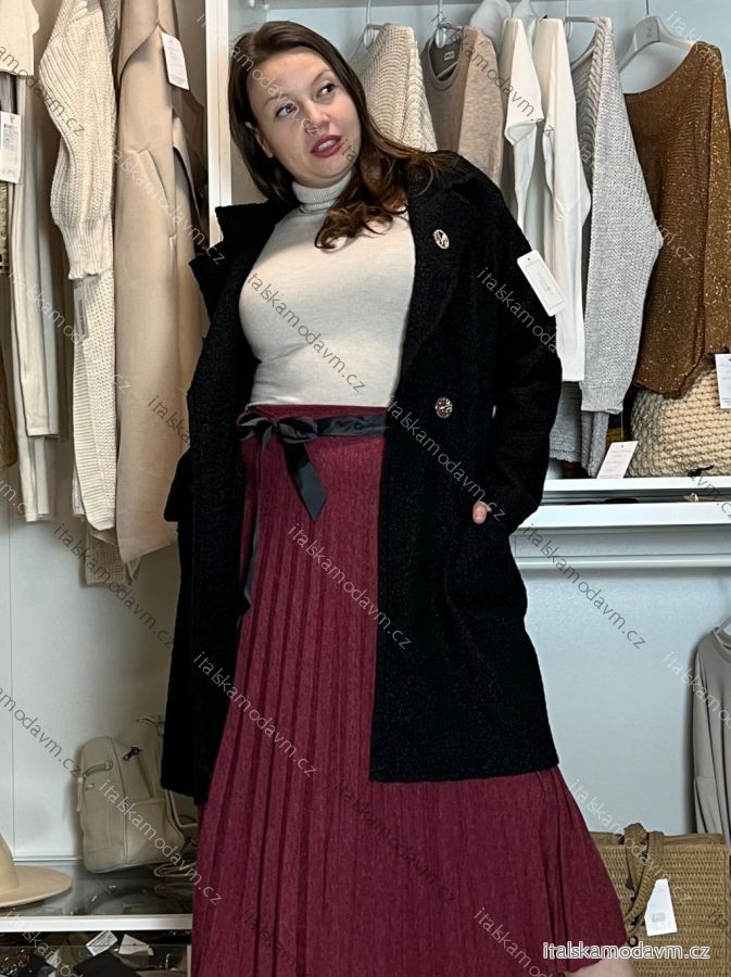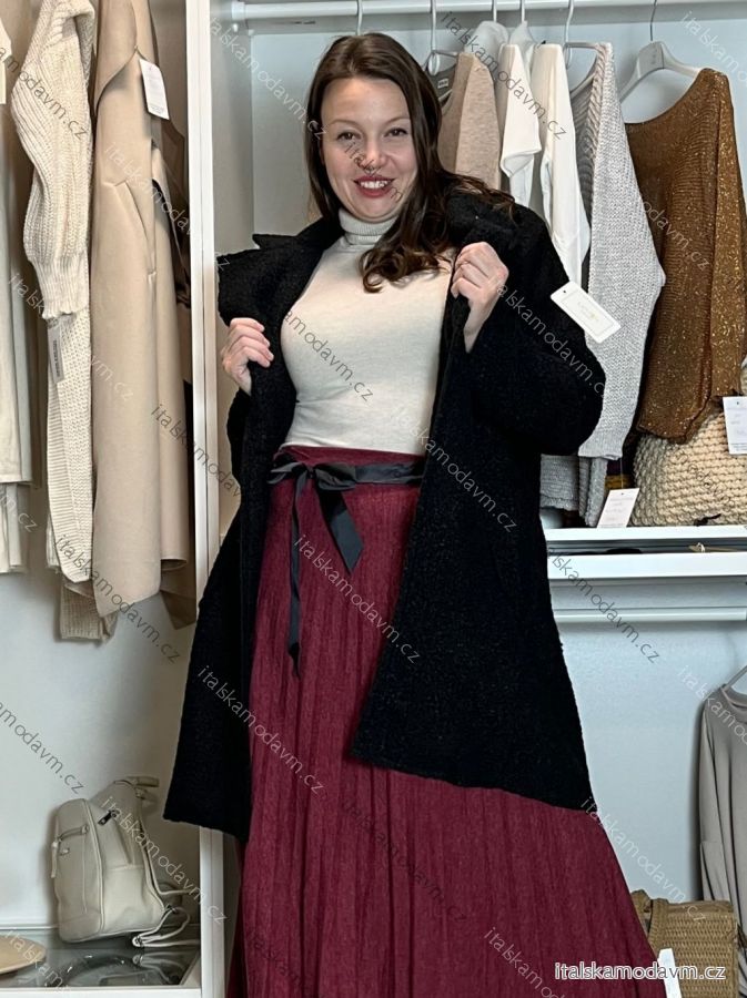 ZBOŽÍ (22789) > oblečenie dámske (18613) > Bundy, kabáty, vesty a saka (1303) > kabáty dámske (517) > kabáty flaušový (160) > Kabát flaušový baránkový dlhý rukáv dámsky nadrozmer (44/46/48 ONE SIZE) TALIANSKA MÓDA IM4251121/DUR 44/46/48 čierna