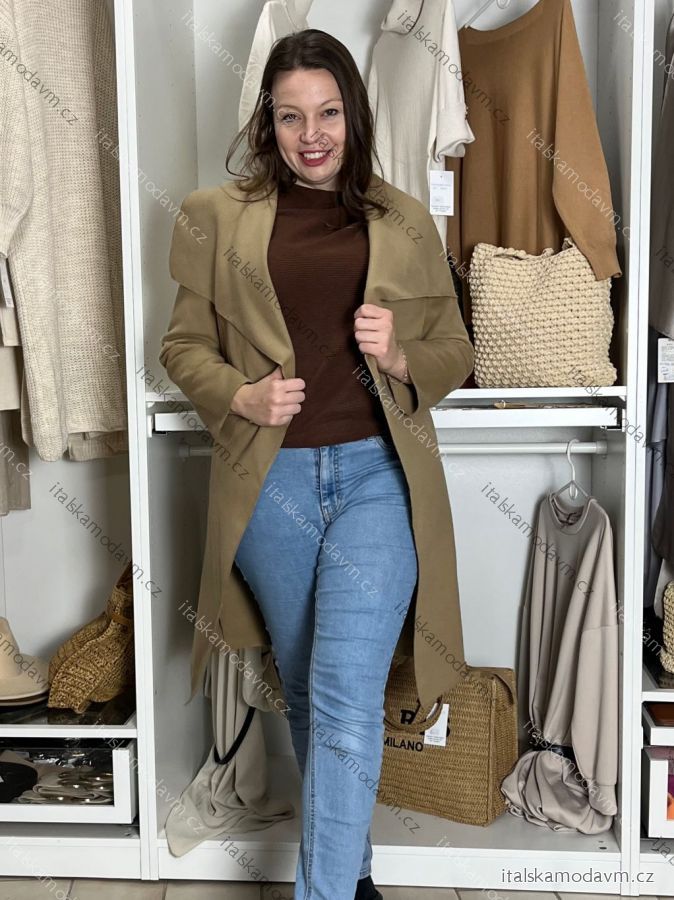 Kabát flaušový dámsky (S / M ONE SIZE) TALIANSKÁ MÓDA IMM211604/DR camel