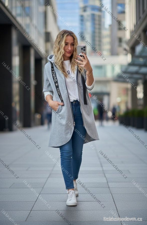 Kabát flaušový na zip dlhý dámsky DANCE (M/L/XL) TALIANSKA MÓDA IMD25282