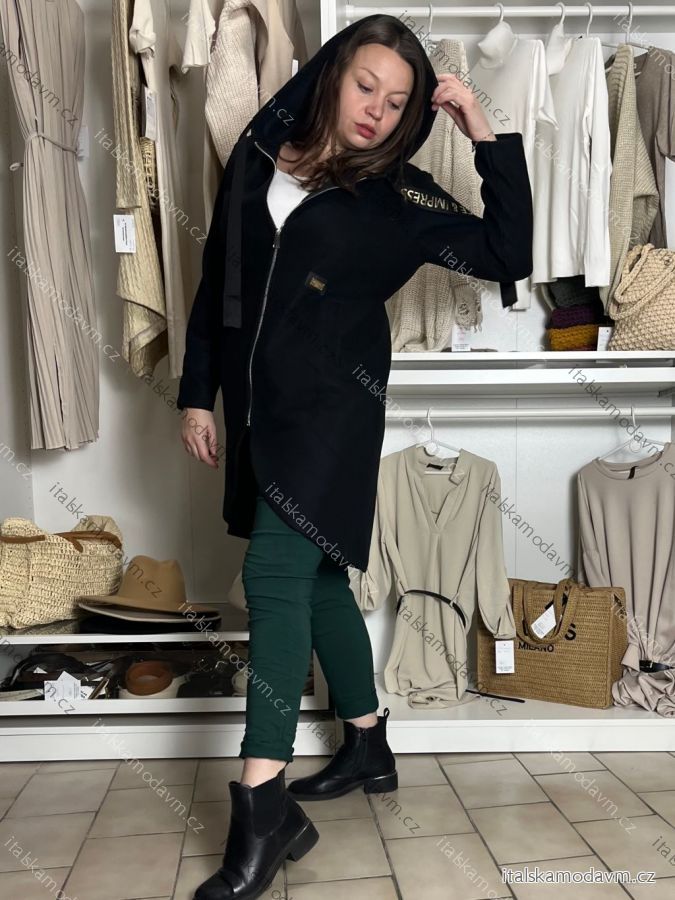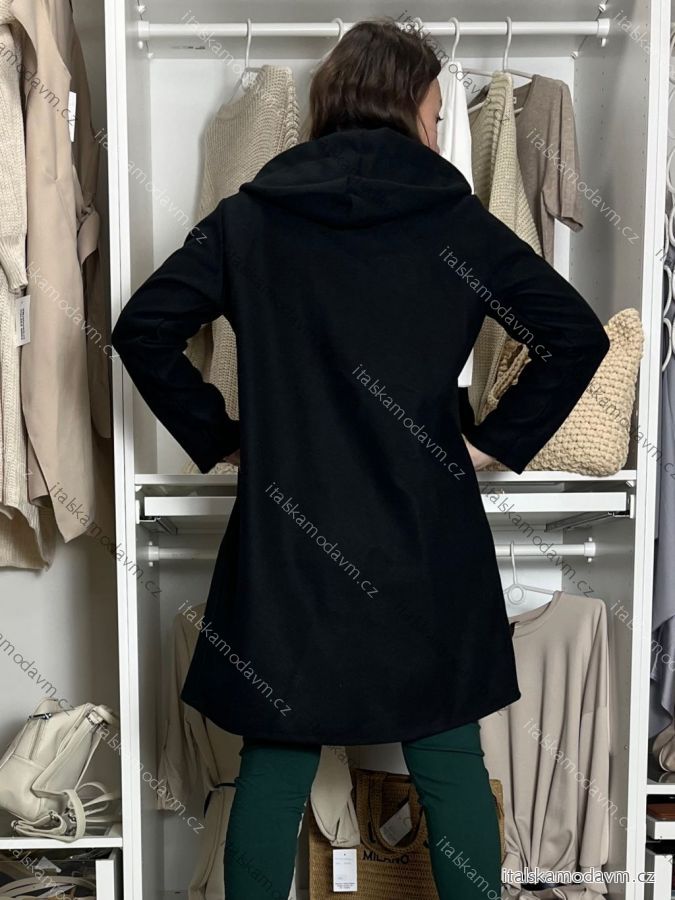 Kabát flaušový na zip dlouhý dámský DANCE (M/L/XL) ITALSKÁ MÓDA IMD25282/DUR M/L/XL Černá