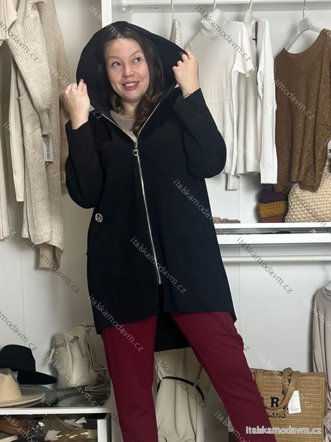 Kabát flaušový na zips s kapucňou dlhý rukáv dámsky nadrozmer VIVIEN (46/48/50 ONE SIZE) TALIANSKA MÓDA IMD24443