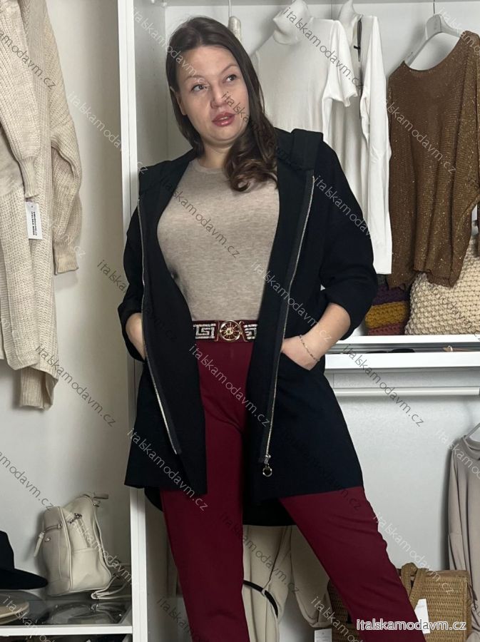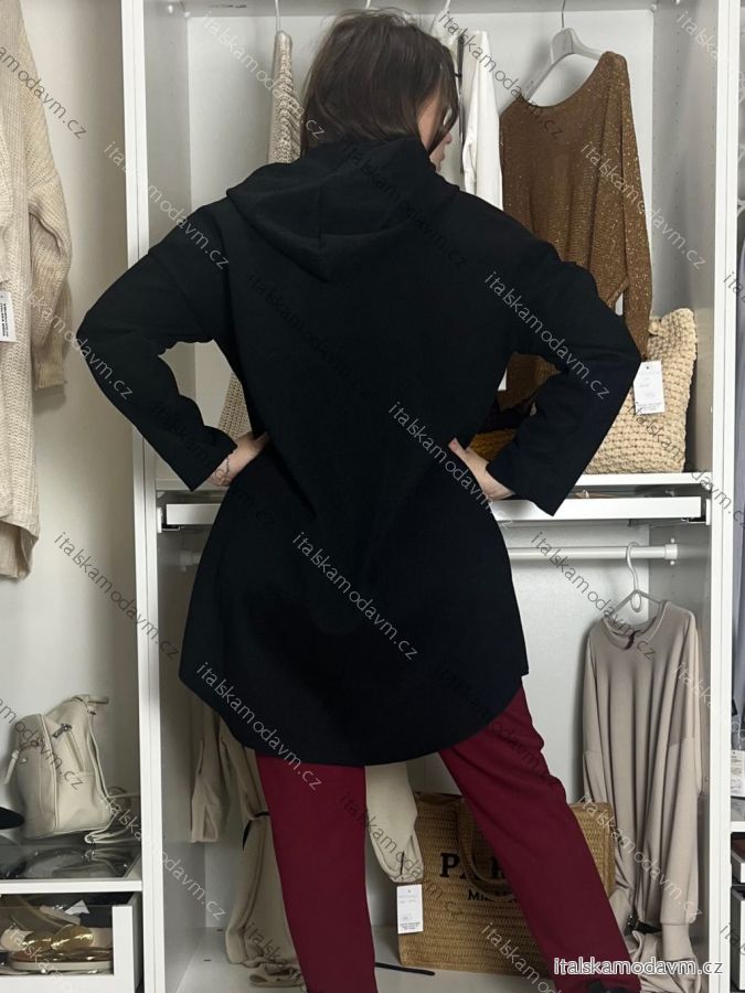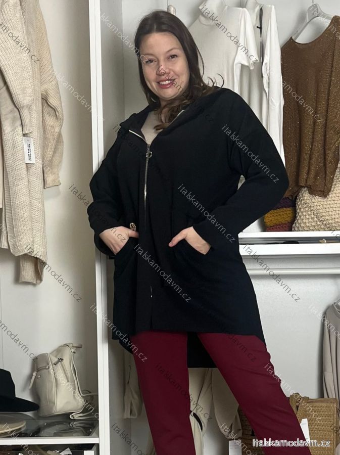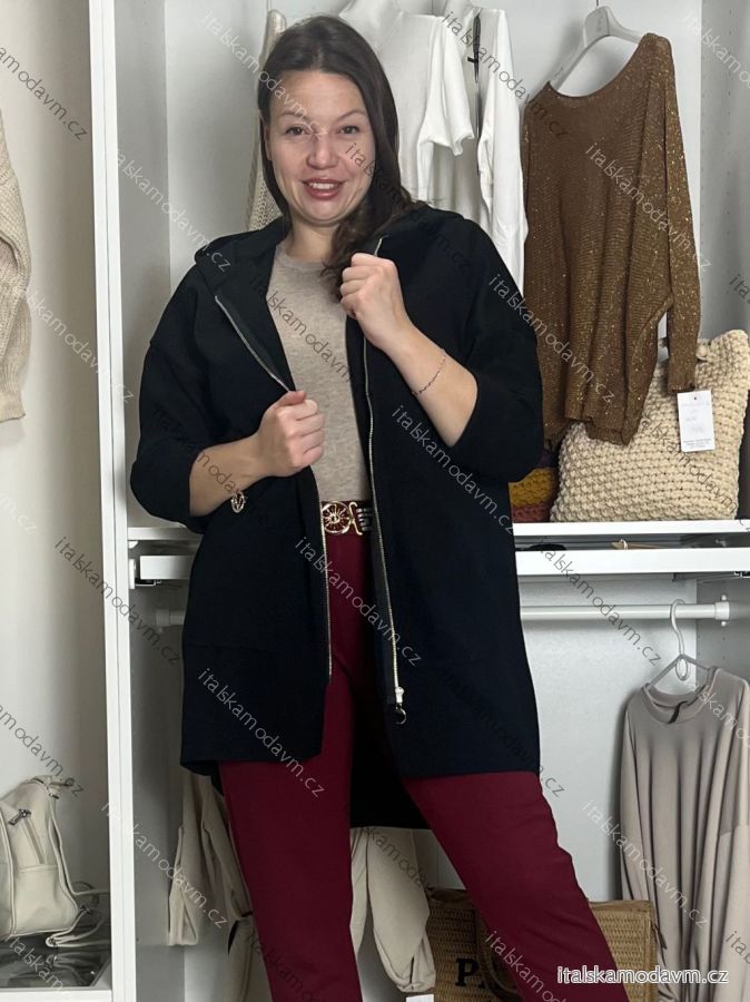 Kabát flaušový na zips s kapucňou dlhý rukáv dámsky nadrozmer VIVIEN (46/48/50 ONE SIZE) TALIANSKA MÓDA IMD24443/DUR 46/48/50 čierna