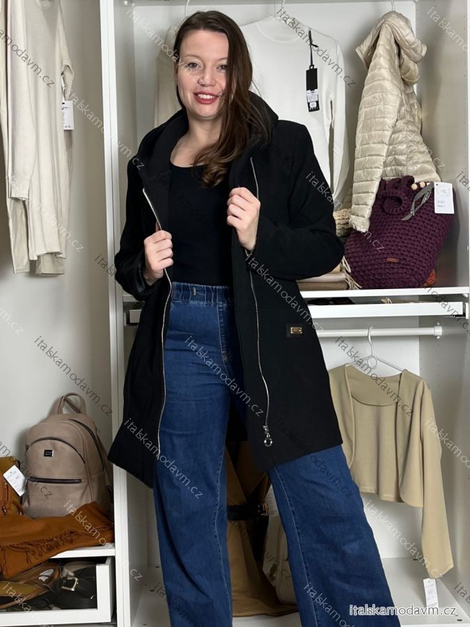 ZBOŽÍ (21609) > oblečenie dámske (17437) > Bundy, kabáty, vesty a saka (1215) > Kabát flaušový na zips s kapucňou dámsky (M/L/XL ONE SIZE) TALIANSKÁ MÓDA IMD24422/DR M/L/XL čierna