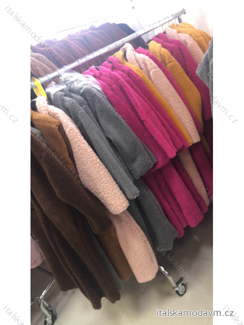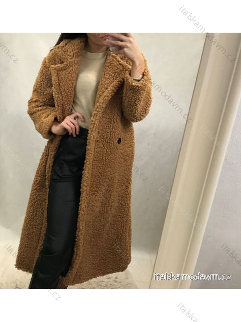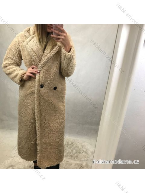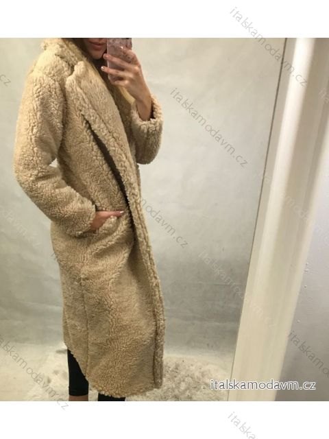 Kabát kožíšek Teddy dlouhý rukáv dámský (UNI S/L) ITALSKÁ MÓDA IMM201662/DR béžová svetlá SL