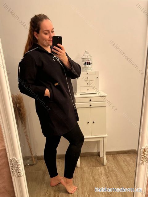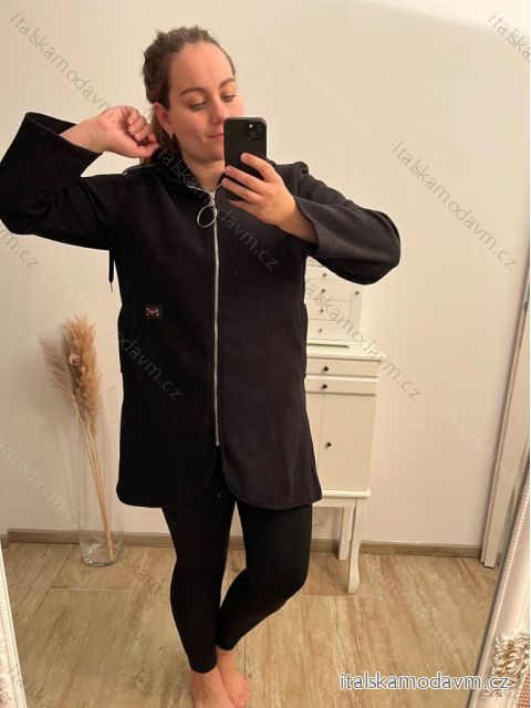 Kabát na zips s kapucňou dlhý rukáv dámska nadrozmer (XL/2XL ONE SIZE) TALIANSKA MÓDA IM422650/DR