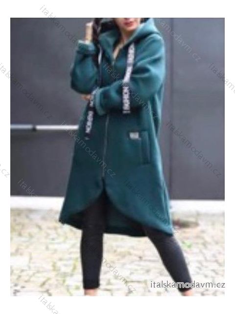Kabát predĺžený s kapucňou dlhý rukáv dámska (S/M/L ONE SIZE) TALIANSKA MÓDA IMC22678/DU - smaragdová , M / L