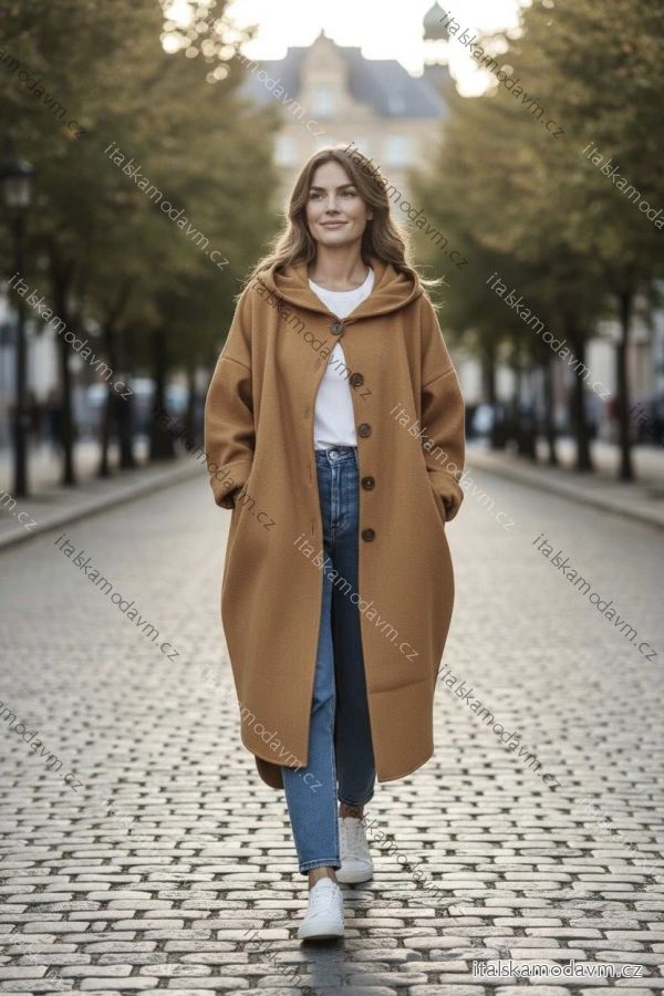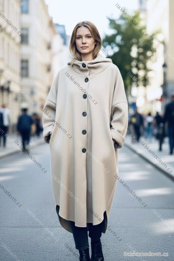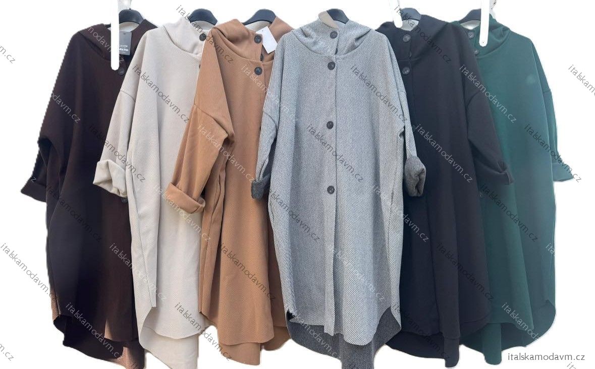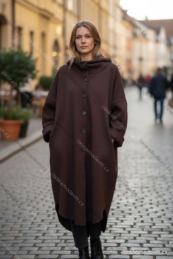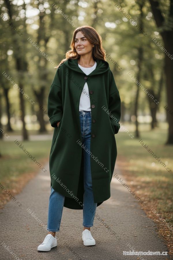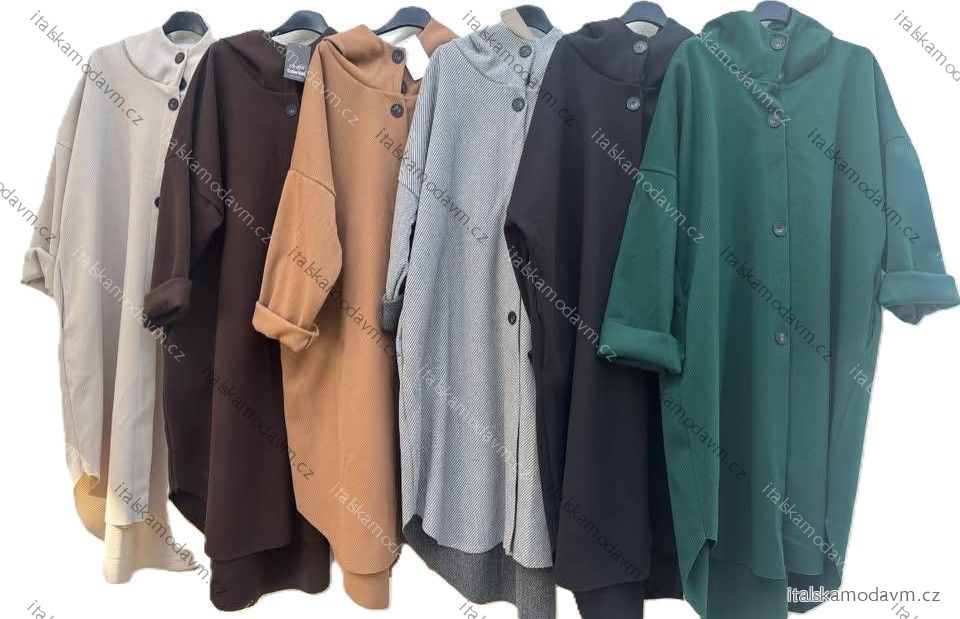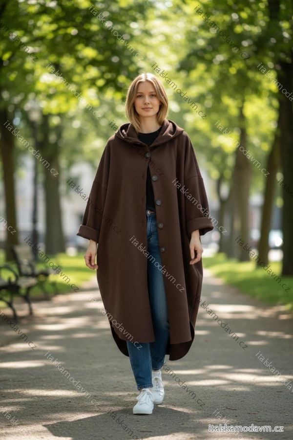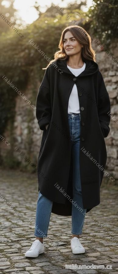 Kabát slabý na gombíky s kapucňou dlhý rukáv dámsky nadrozmer (54/56/58 ONE SIZE) TALIANSKA MÓDA IMD24413
