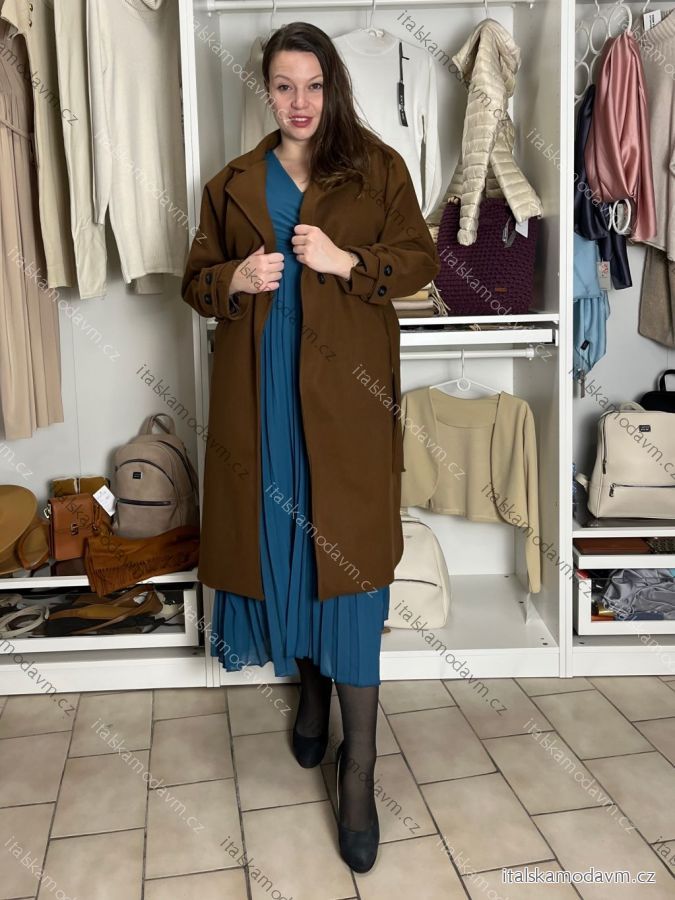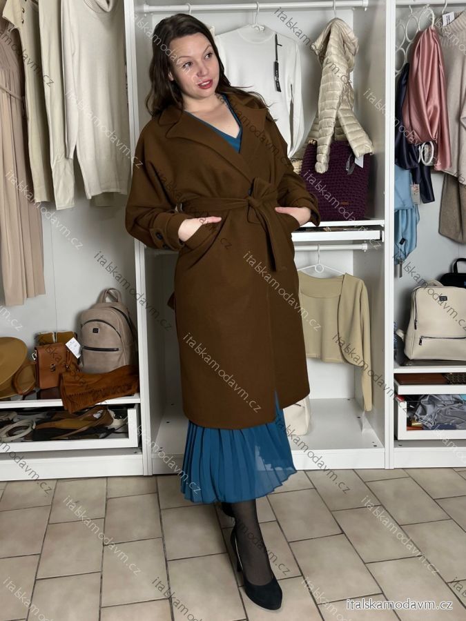 Kabát teplý oversize dlhý rukáv dámsky (M/L/XL ONE SIZE) TALIANSKA MÓDA IMD25260/DU M/L/XL hnedá