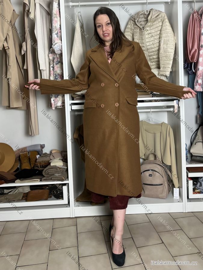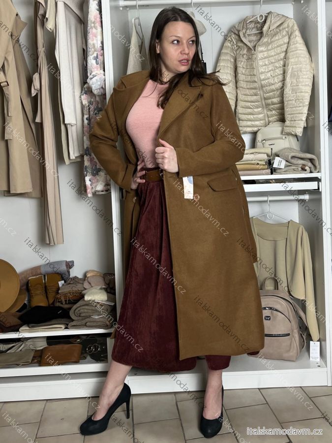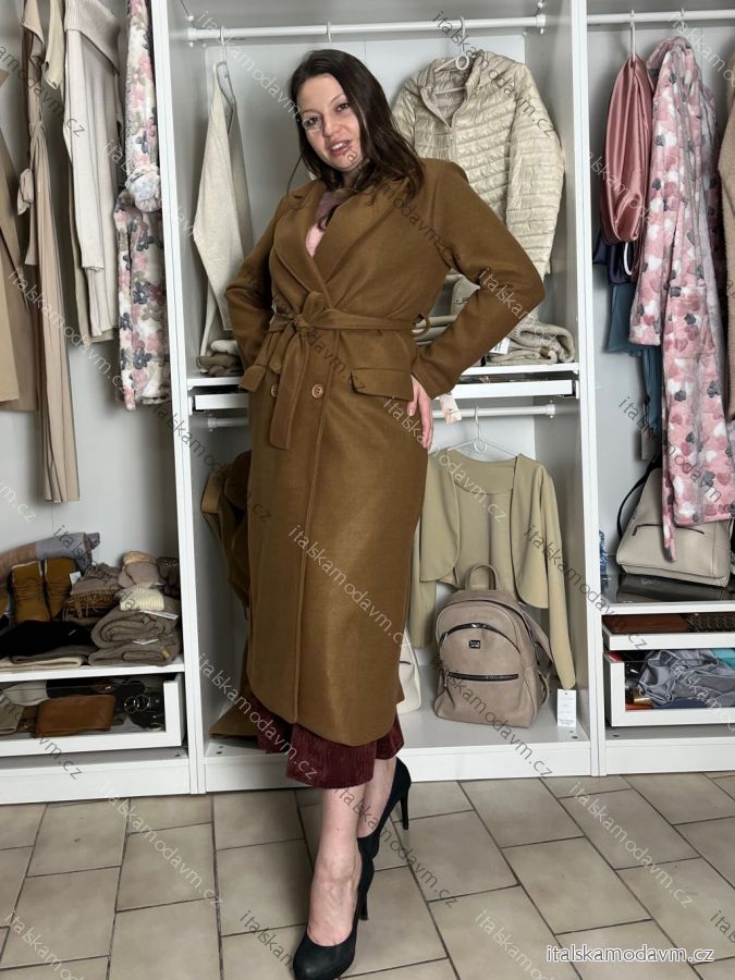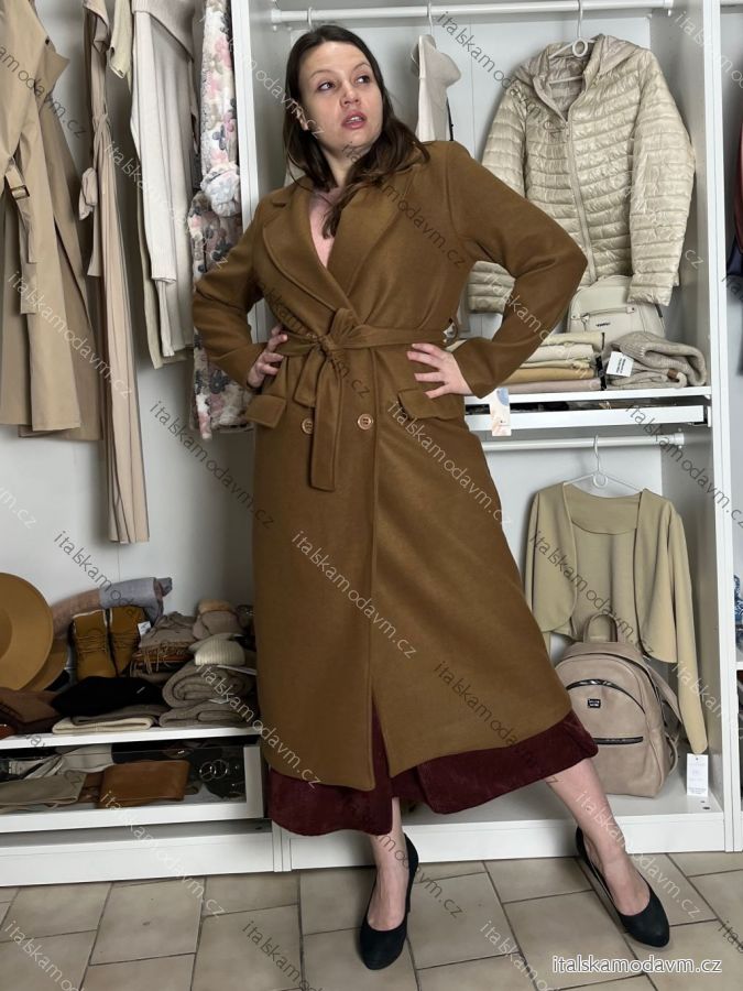 Kabát teplý s opaskom dlhý rukáv dámsky (M/L ONE SIZE) TALIANSKA MÓDA IMC25536/DU M / L hnedá