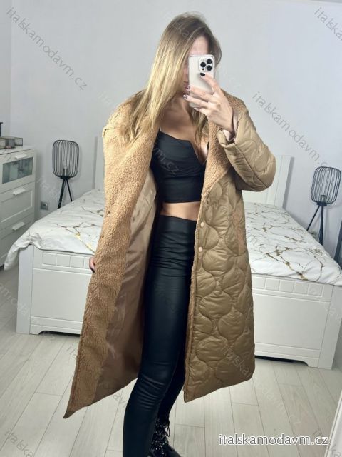 Kabát zimní s beránkem dlouhý rukáv dámský (S/M/L ONE SIZE) ITALSKÁ MÓDA IMD23010/DU M/L tmavě zelená