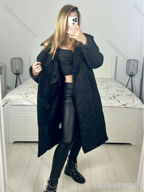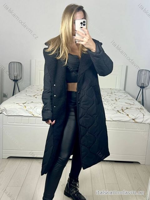 Kabát zimní s beránkem dlouhý rukáv dámský (S/M/L ONE SIZE) ITALSKÁ MÓDA IMD23010