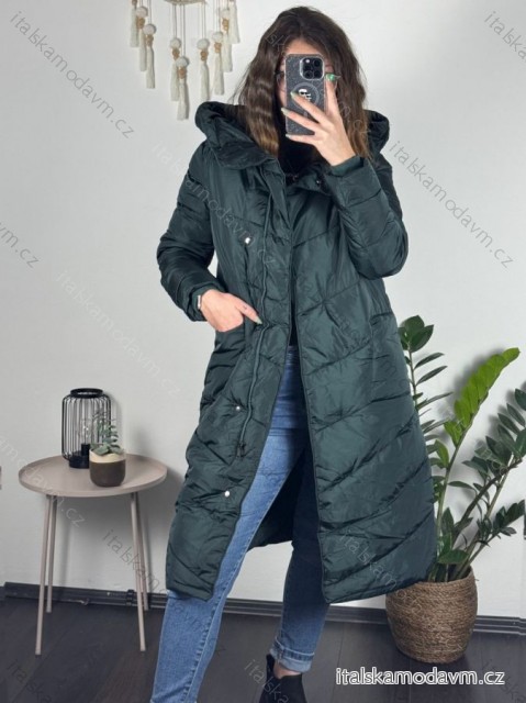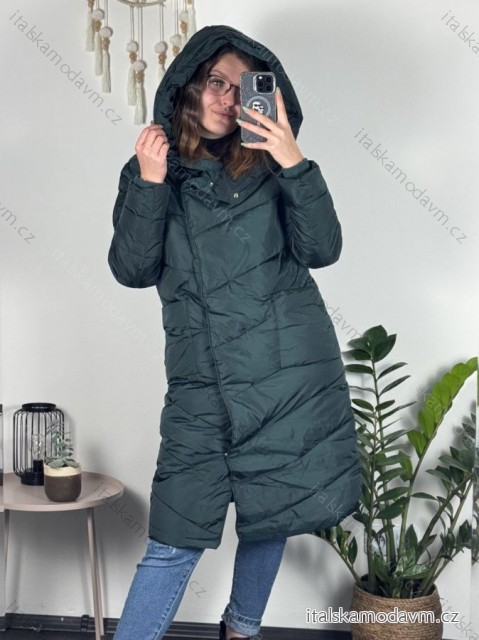 Kabát zimní s kapucí dámska LHD fashion (S-2XL) LHD-2M-033/DR S tmavě smaragdová