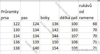 6XL - přes prsa 136cm, v pase 139cm, přes boky 150cm, délka 108cm, přes ramena 71cm.