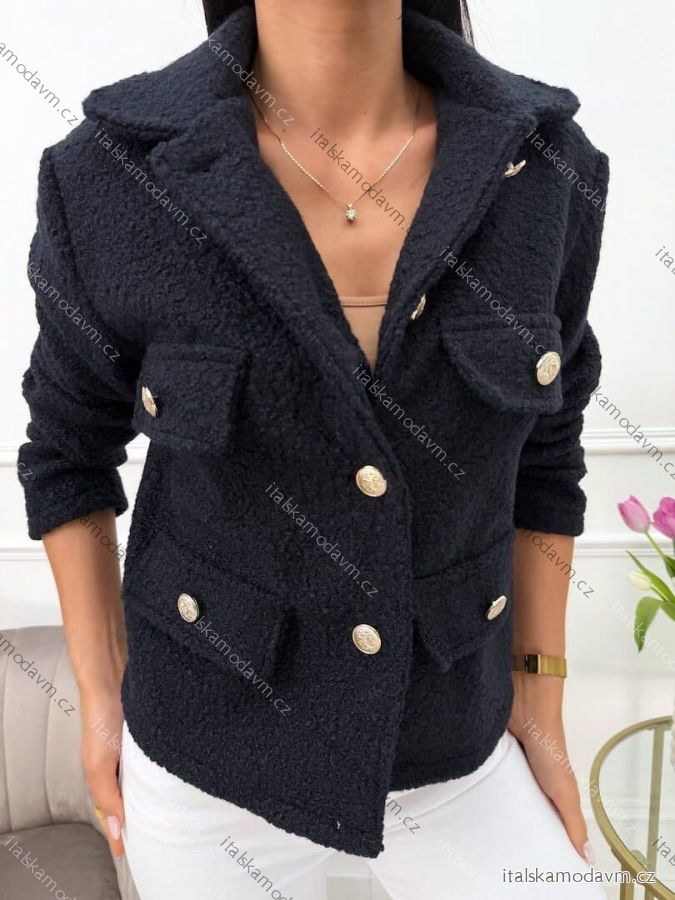 Kabátek beránkový flaušový dlouhý rukáv dámský (S/M/L ONE SIZE) ITALSKÁ MÓDA IMD25177/DR Černá S/M/L