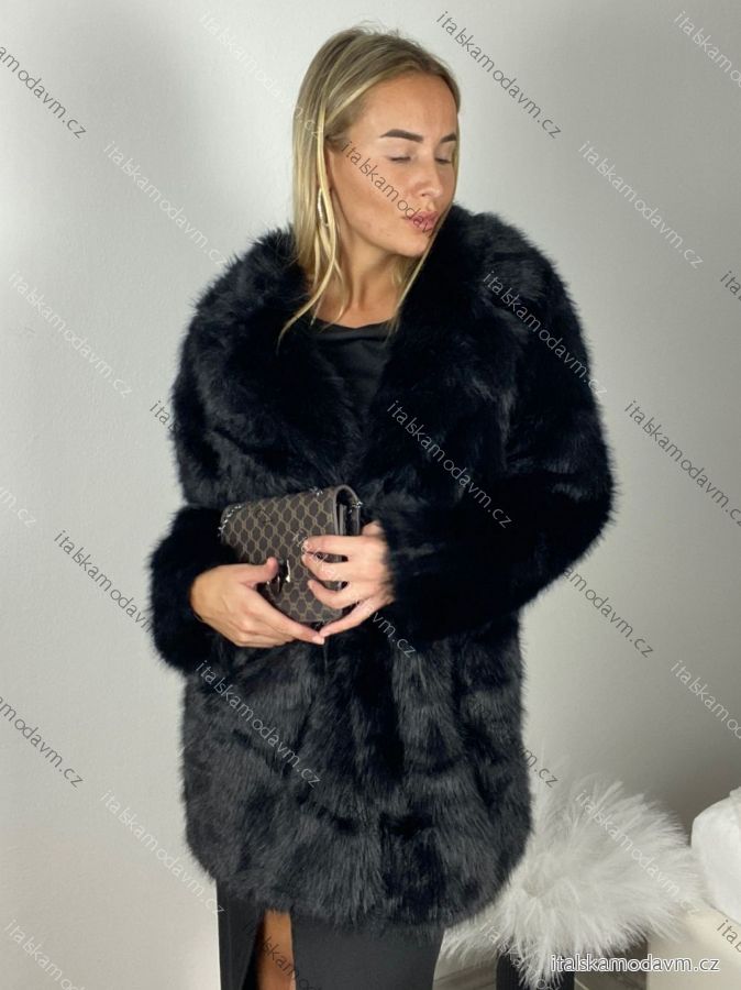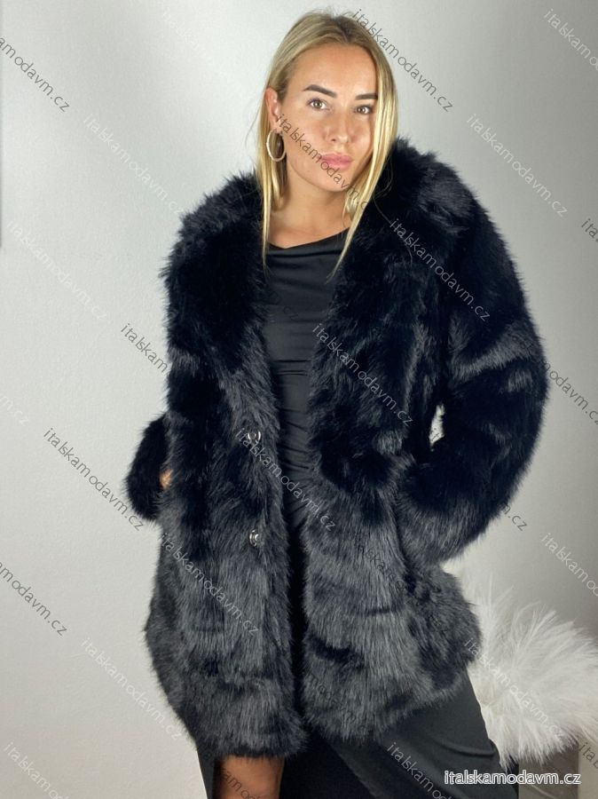 Kabátek kožich chlupatý zimní dlouhý rukáv dámský (S/M/L ONE SIZE) ITALSKÁ MÓDA IMSM25HTW-1340/DUR Černá S/M/L