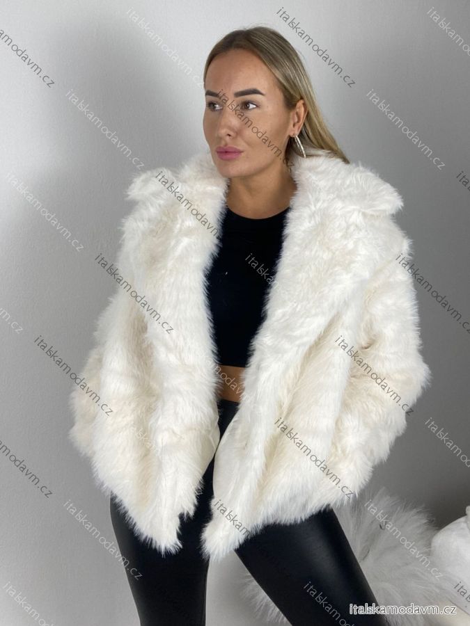 Kabátek kožich chlupatý zimní dlouhý rukáv dámský (S-L ONE SIZE) ITALSKÁ MÓDA IMWAR25CR2288/DR M bílá