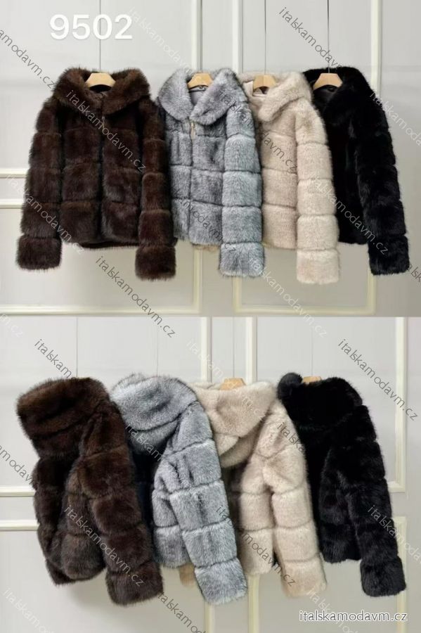 Kabátek kožíšek s kapucí dlouhý rukáv dámský (XS/S/M ONE SIZE) ITALSKÁ MÓDA IMM25M9502