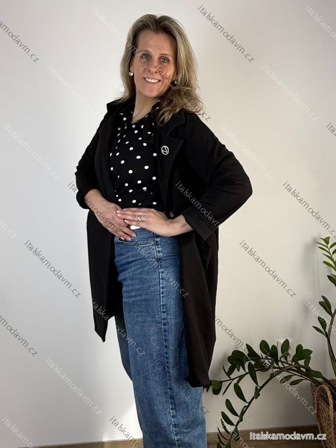 Kabátek slabý s kapsami na knoflíky dlouhý rukáv dámský nadrozměr (44/46/48 ONE SIZE) ITALSKÁ MÓDA IM426011/DUR 44/46/48 Černá