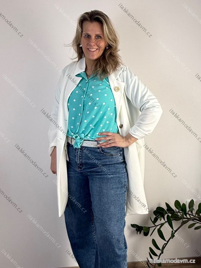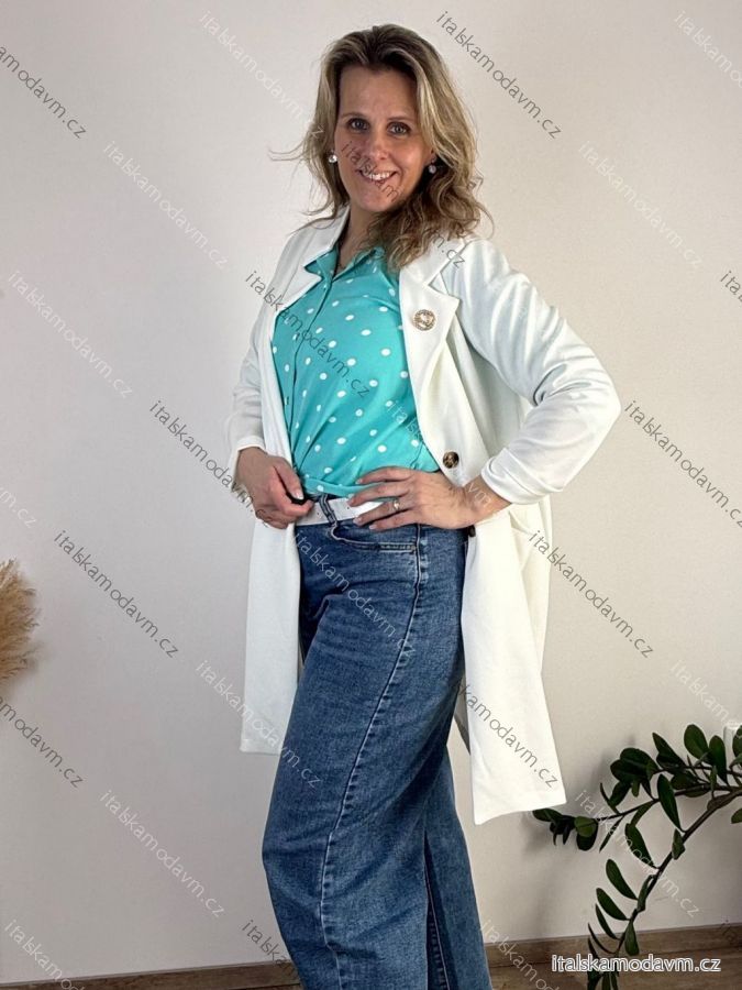 Kabátik slabý s vreckami na gombíky dlhý rukáv dámsky nadrozmer (44/46/48 ONE SIZE) TALIANSKA MÓDA IM426011/DUR 44/46/48 biela