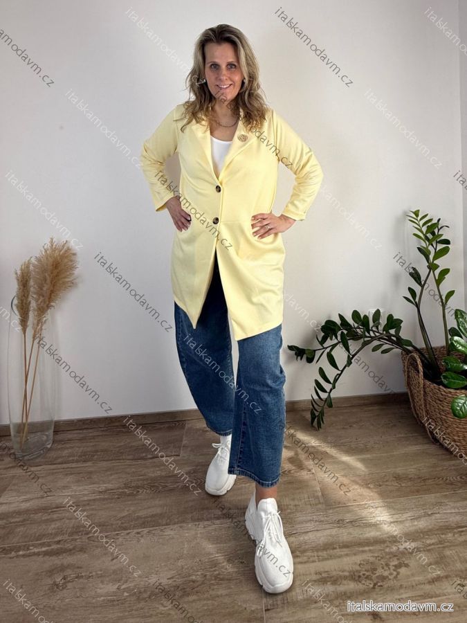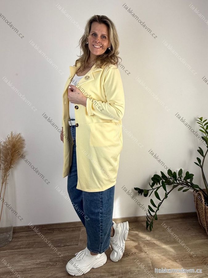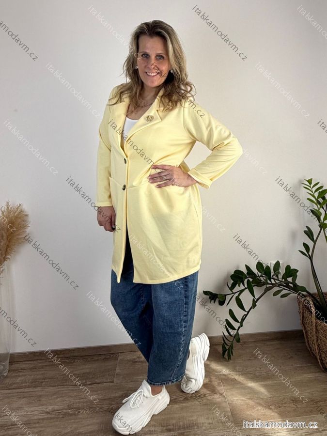 Kabátik slabý s vreckami na gombíky dlhý rukáv dámsky nadrozmer (44/46/48 ONE SIZE) TALIANSKA MÓDA IM426011/DUR 44/46/48 žlutá