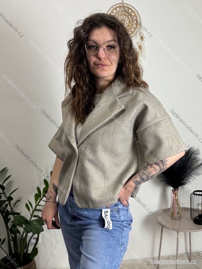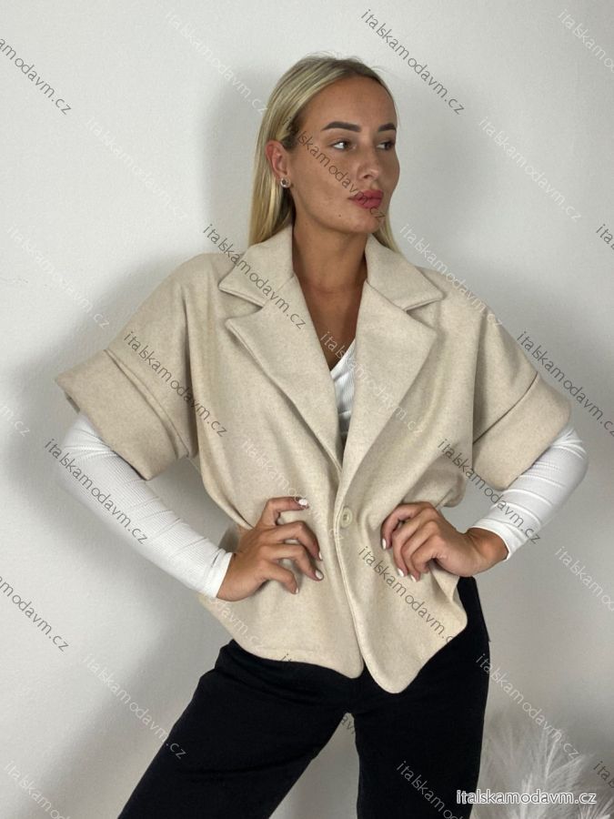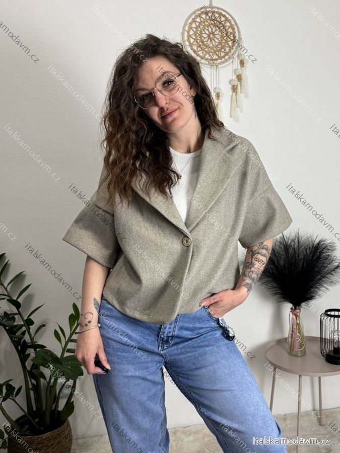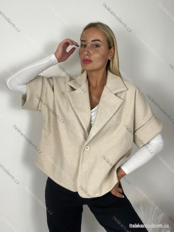 Kabátik teplý oversize krátky rukáv dámsky (XS/M/L/XL/2XL ONE SIZE) TALIANSKA MÓDA IMC26069/DR tmavě béžová M/L/XL