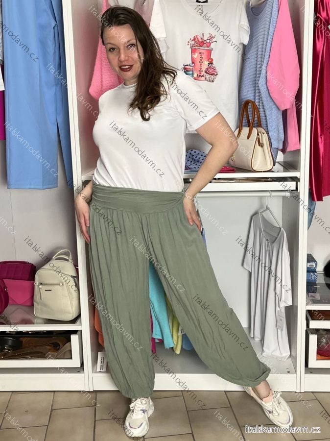 Kalhoty aladinky harémky dlouhé dámské (M/L ONE SIZE) ITALSKÁ MÓDA IMD22212/DR M/L KHAKI