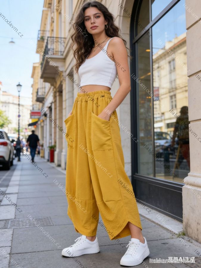 Kalhoty dlouhé letní dámské nadrozměr (44/46/48 ONE SIZE) ITALSKÁ MÓDA IM426077