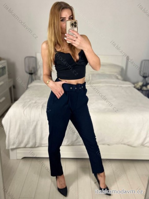 Kalhoty elegantní dlouhé dámské (S/M ONE SIZE) ITALSKÁ MÓDA IMPLI241703/DU - modrá petrolejová - S/M