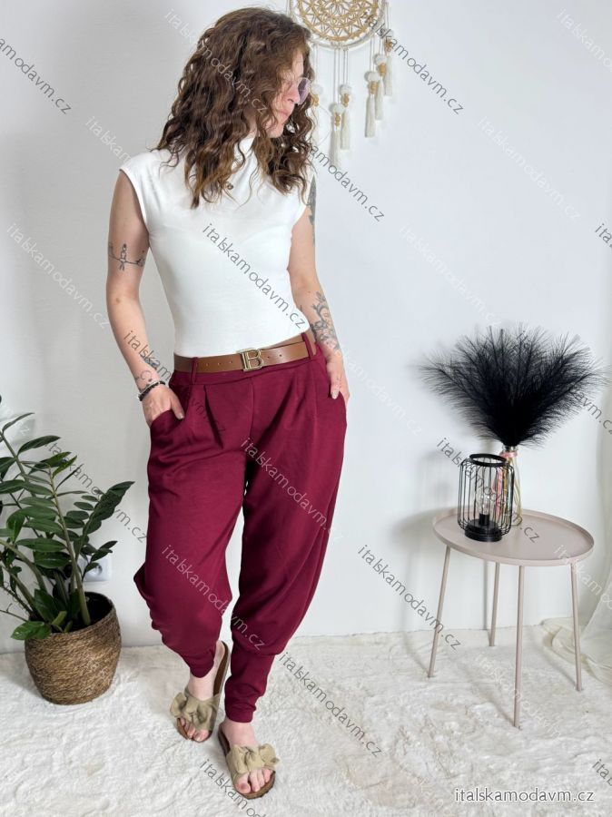 Kalhoty elegantní s páskem dámské nadrozměr (M/L/XL ONE SIZE) ITALSKÁ MÓDA IMD25011/DUR vínová L/XL