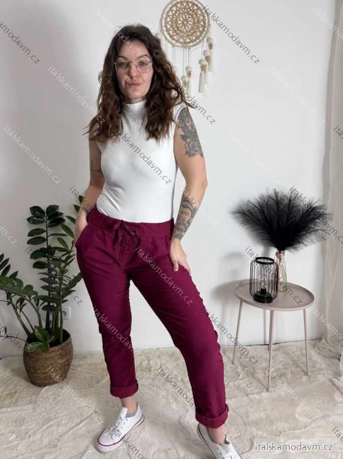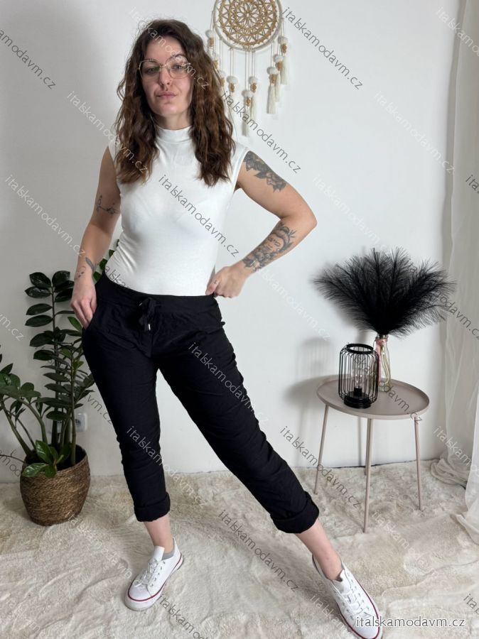 Kalhoty strečové mačkáče zateplené dlouhé dámské PANTALONE (S/M/L ONE SIZE) ITALSKÁ MÓDA IMPOZ25OL-5591/DUR khaki S/M/L