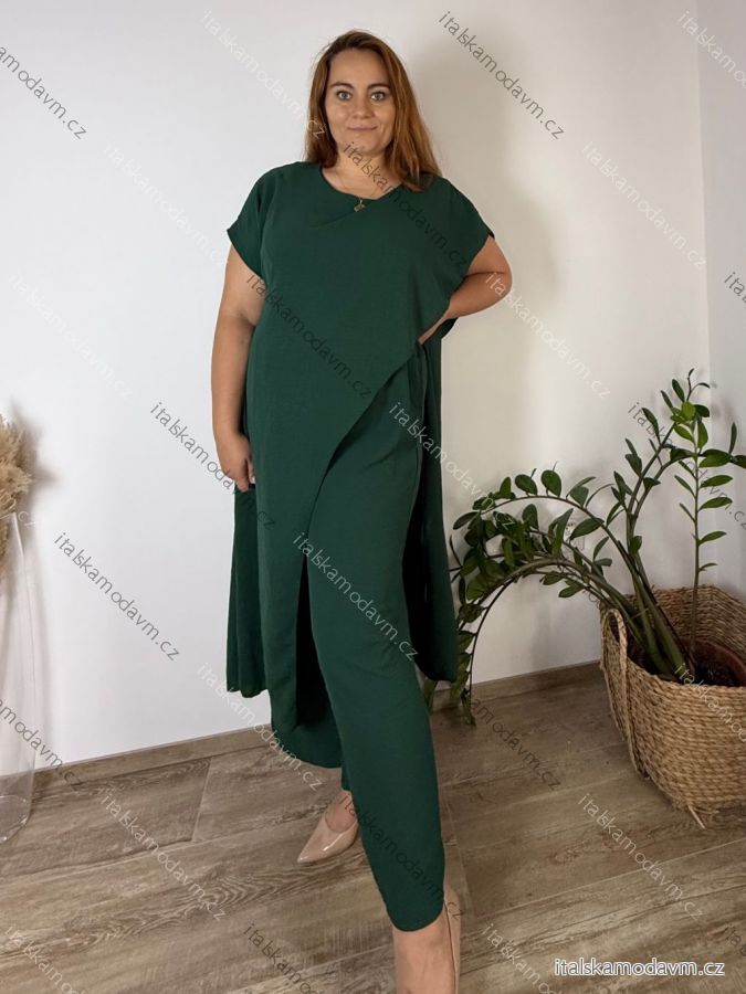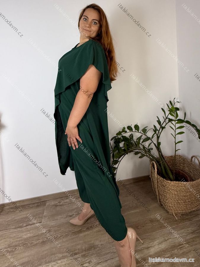 Komplet elegantní krátký rukáv dámské nadrozměr JASMINA (50/52/54 ONE SIZE) ITALSKÁ MÓDA IM425311/DUR smaragdová 50/52/54
