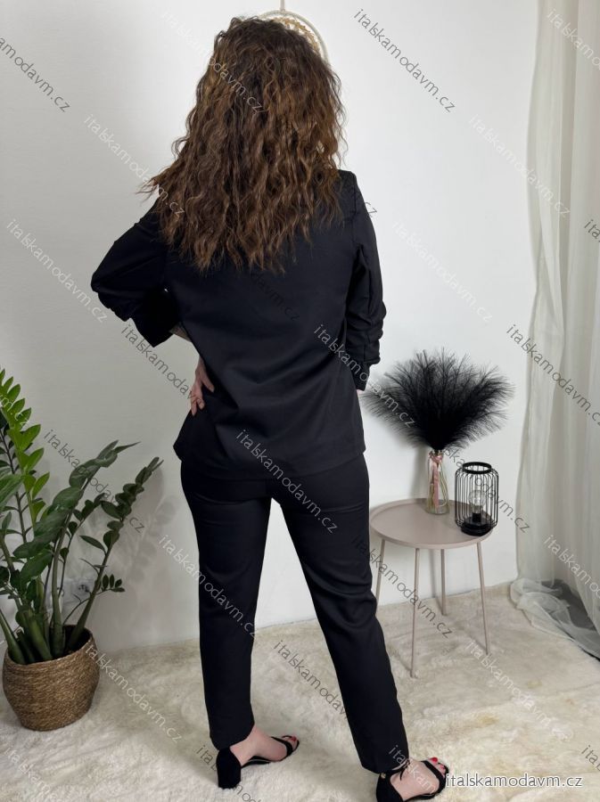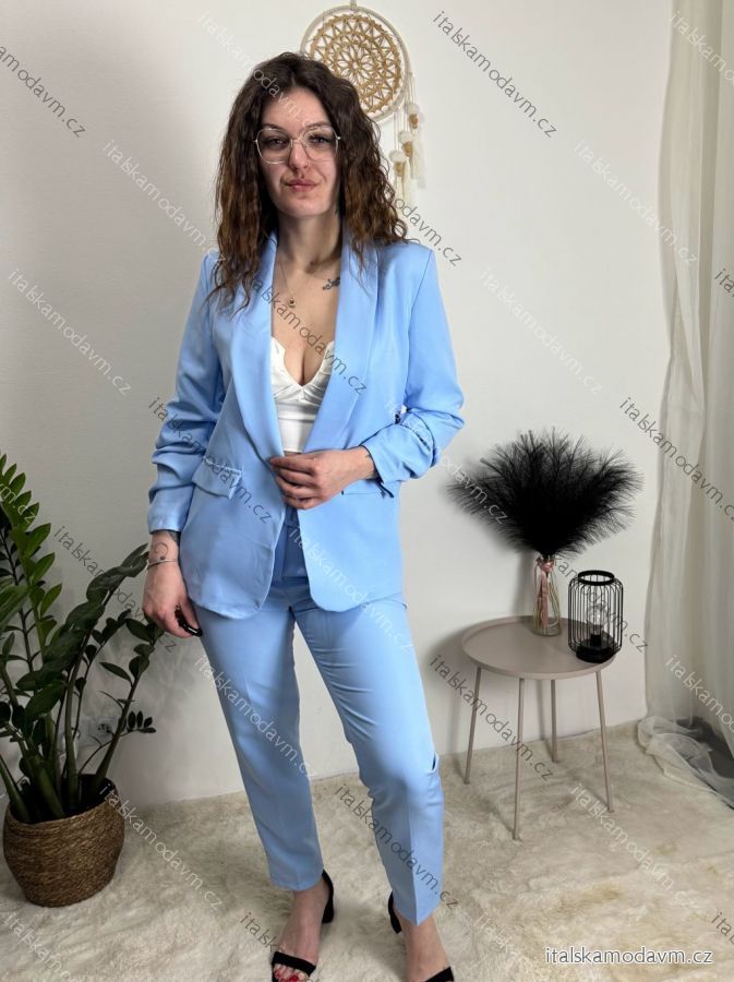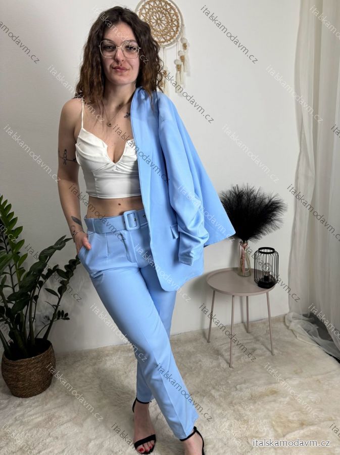 Komplet sako dlhý rukáv a kalhoty s páskem dámsky (S/M/L ONE SIZE) TALIANSKÁ MÓDA IMWCA261167/DUR světle modrá S/M/L