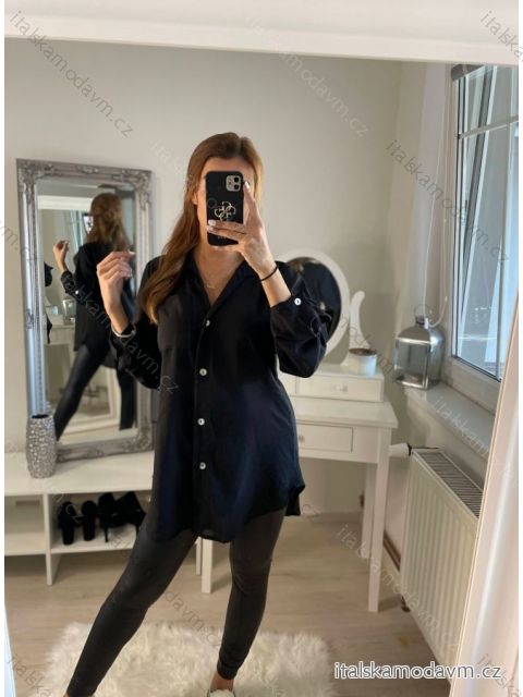 Košeľa oversize dlhý rukáv dámska (S/M/L ONE SIZE) TALIANSKA MÓDA IMWB22243 čierna M / L
