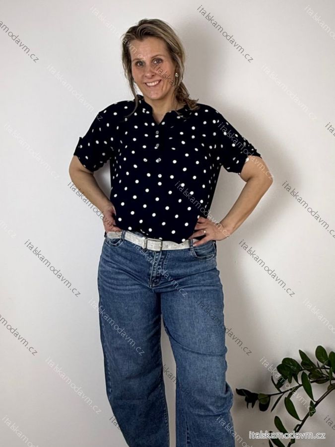 Košeľa predĺžená bodka 3/4 dlhý rukáv dámska nadrozmer HANNA (40/42/44 ONE SIZE) TALIANSKA MÓDA IMC26064/DU čierna