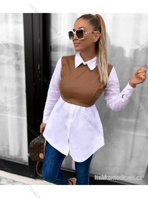 ZBOŽÍ (22753) > Košele prodlžená s vestou dlhý rukáv dámske (S / M / L ONE SIZE) TALIANSKÁ MÓDA IMWD20699 <p>S-M-L</p> hnedá