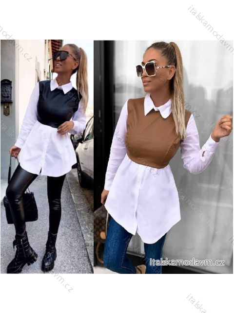 Košele prodlžená s vestou dlhý rukáv dámske (S / M / L ONE SIZE) TALIANSKÁ MÓDA IMWD20699
