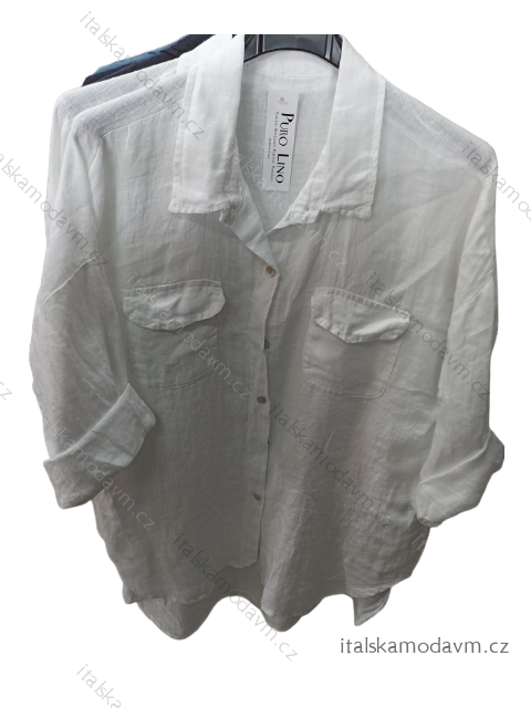 Košile lněná dlouhý rukáv dámská nadrozměr (XL/2XL ONE SIZE) ITALSKá MóDA IM722034