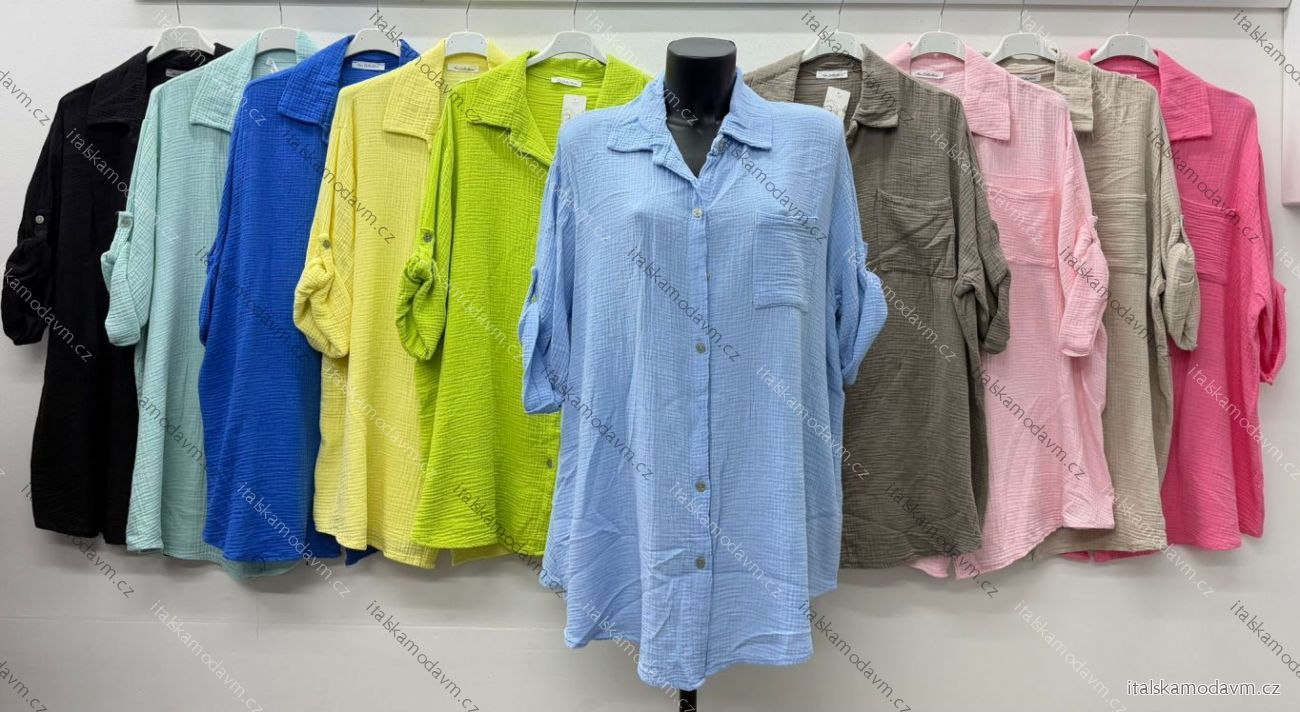 Košile mušelínová dlouhý rukáv dámská nadrozměr ADIGE (50/52/54 ONE SIZE) ITALSKÁ MÓDA IM424299